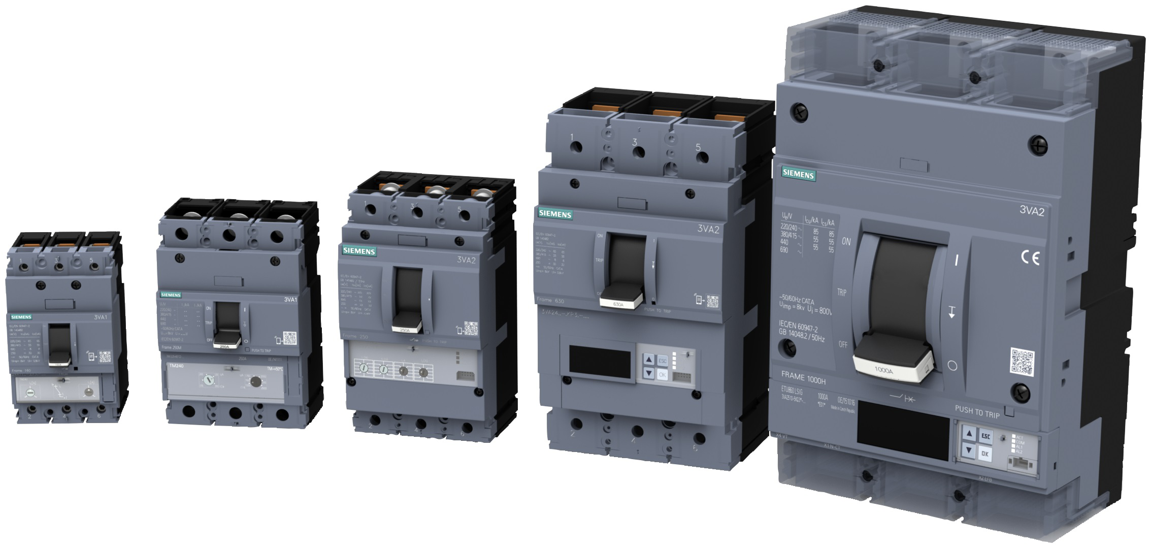全新一代塑壳断路器3VA,臻至完美的设计,安全可靠,灵活高效。它广泛应用于工业、基础设施、建筑楼宇、OEM等场合,为配电系统提供了最佳的保护、隔离和控制解决方案。并且,3VA塑壳断路器提供了丰富的CAx图纸等技术文件,快速协助工程设计和系统集成。 产品优势一览 3VA1热磁式和3VA2电子式满足不同需求 3VA1分断能力70KA并且Icu=Ics条件下,全球体积最小 3VA1短路分断能力范围为16KA-70KA,Ics=Icu 3VA2短路分断能力最大至150KA,Ics=Icu 3VA2具有非常优秀的选择性保护,壳体电流级差1:2.5可实现完全选择性 3VA2的ETU8系列集成了计量功能(电流、电压、功率、电能、功率因数、谐波、频率) COM800网关可连接并上传8台3VA2的数据,标配通讯Modbus TCP,可扩展PROFIBUS,PROFINET 侧装手柄满足特定OEM客户需求 3VA全系列内部附件通用,安装简便,降低备品备件成本 手柄可配置LED灯,开关状态清晰明了 侧装漏电方案,节省安装空间 |
